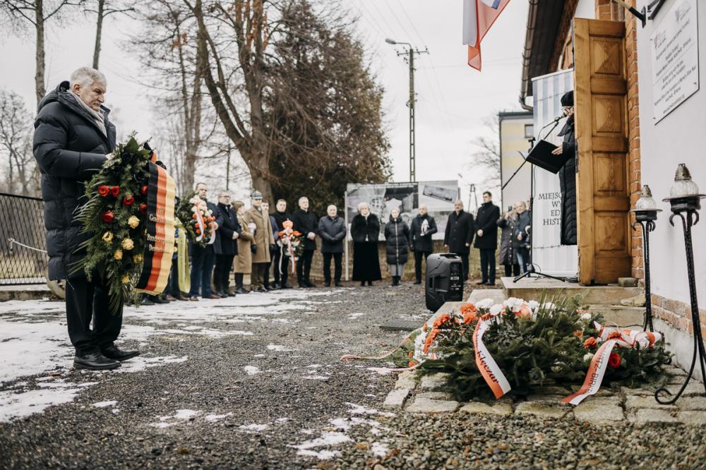 Burmistrz Radosław Szot wraz z przedstawicielami Rady Miejskiej oraz delegacjami władz, organizacji i instytucji działających na terenie Gminy uczcili 81 rocznicę zakończenia działań wojennych oraz wyzwolenia kompleksu obozowego KL Auschwitz - Birkenau. Kwiaty i znicze złożono w Brzeszczach - Borze, przy historycznym budynku byłej Karnej Kompani Kobiet KL Auschwitz - Bor/Budy Frauen Strafkompanie.