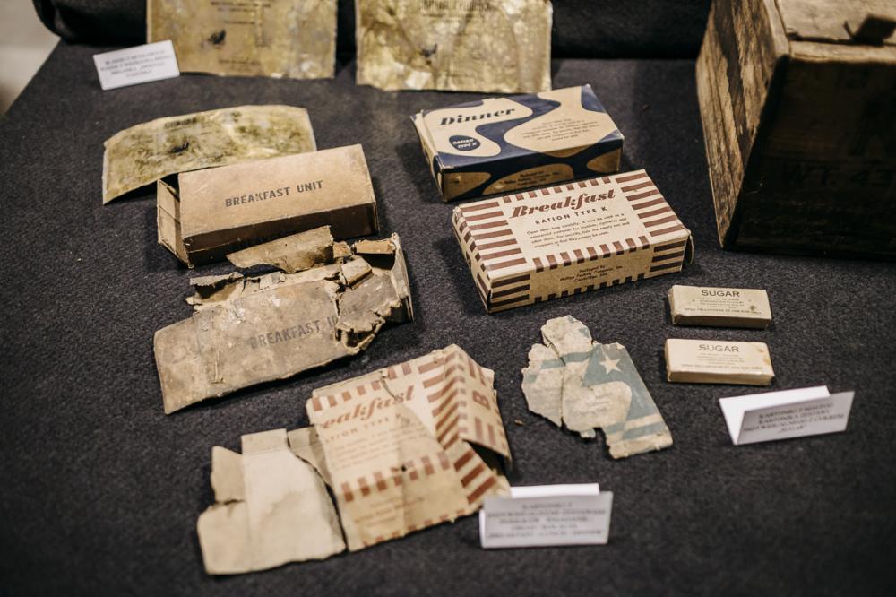Fundacja przedstawiła oryginalne prowizoryczne nosze wykonane z jutowego worka rozciętego po szwach i dwóch drewnianych drążków, które zrobiono w jednym z okolicznych gospodarstw, by wynosić z baraków chorych więźniów i tych nie mających siły samodzielnie się poruszać. Przedstawiono oryginalne metalowe puszki, skrzynki i kartony z amerykańskich wojskowych racji żywnościowych oraz lekarstwa. Żywność i lekarstwa pochodzą ze Stanów Zjednoczonych, z zaopatrzenia wysyłanego na potrzeby wojenne dla Rosjan tzw. Lend Lease i do Auschwitz, wtedy już do wyzwolonego Oświęcimia. Dotarły wraz z żołnierzami z Frontu Ukraińskiego, którzy wyzwolili kompleks obozu KL Auschwitz od Niemców.