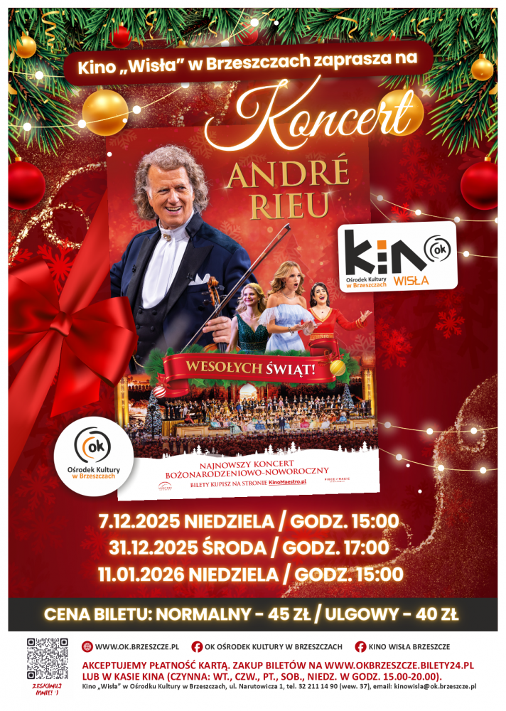 Bezpłatne wejściówki będą wydawane w dniu 24.11.2025 r. od godz. 16.00 (hol dolny OK) dla mieszkańców z terenu samorządów nr 1, 2, 8: