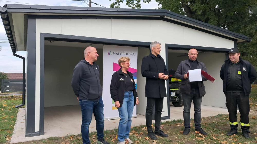 Małopolskie OSP 2025 z przeznaczeniem na dofinansowanie prac remontowo-budowalnych w remizie Ochotniczej Straży Pożarnej w Przecieszynie. W ramach zadania kupiony i zamontowany został garaż, stanowiący część bojowo-magazynową OSP.