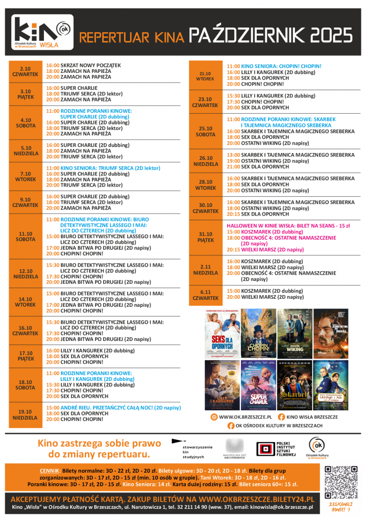 kasa Kina „Wisła” (wt., czw., pt., sob., niedz. w godz. 15.00-20.00,