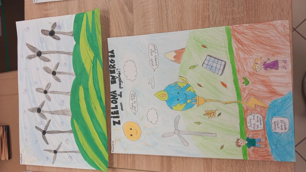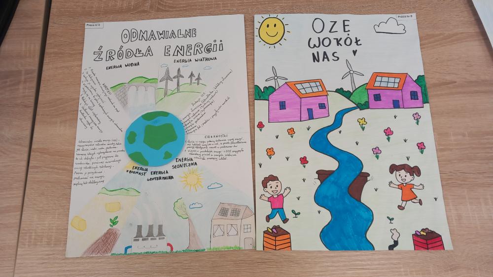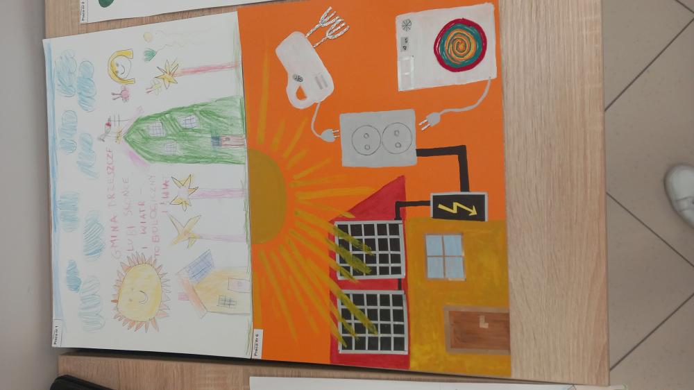 posumowanie konkursu plastycznego ,,OZE wokół nas”. Konkurs, którego celem było podniesienie wiedzy o ochronie powietrza, przeciwdziałanie zmianom klimatu oraz promowanie odnawialnych źródeł energii, cieszył się dużym zainteresowaniem – wpłynęło 16 kreatywnych i pomysłowych prac wykonanych przez dzieci i młodzież z terenu gminy.